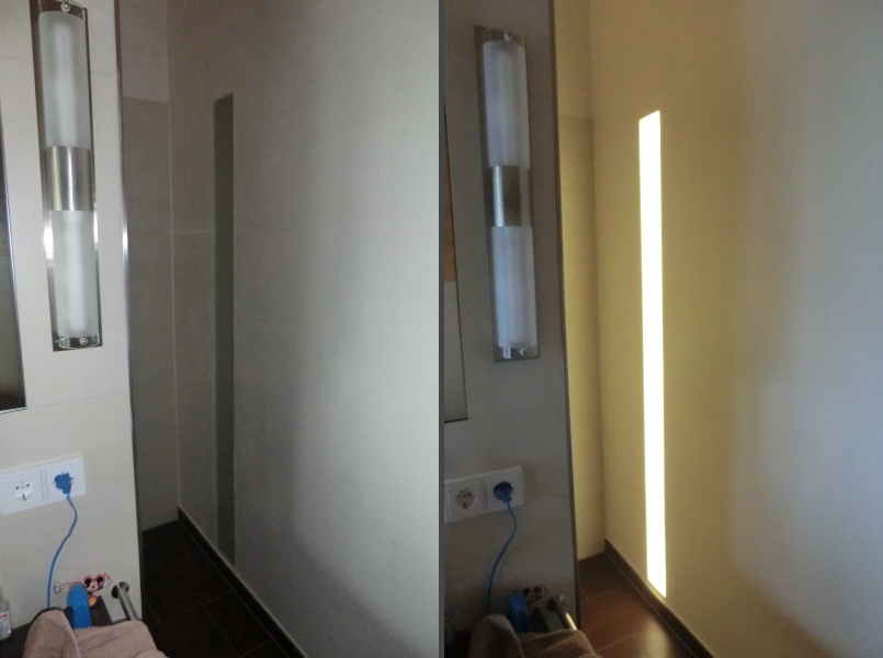 Beispiele für Glasstimmung mit und ohne Licht, und Vergleich "vorher-nachher":